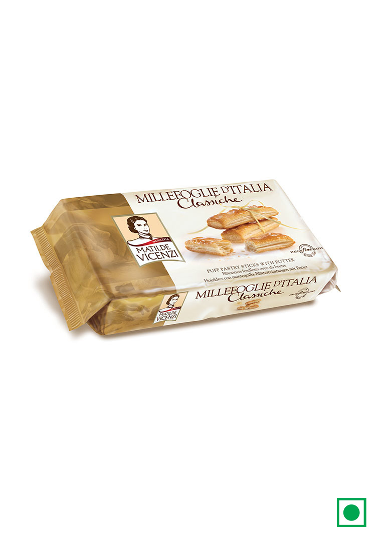 Millefoglie Puff Pastry Sticks With Butter 192 layers of fragrant pastry butter fresh : a unique recipe and unique to meet the most demanding palates , with refined sweetness and genuineness . only for you 125gm 16pcs/ctn
