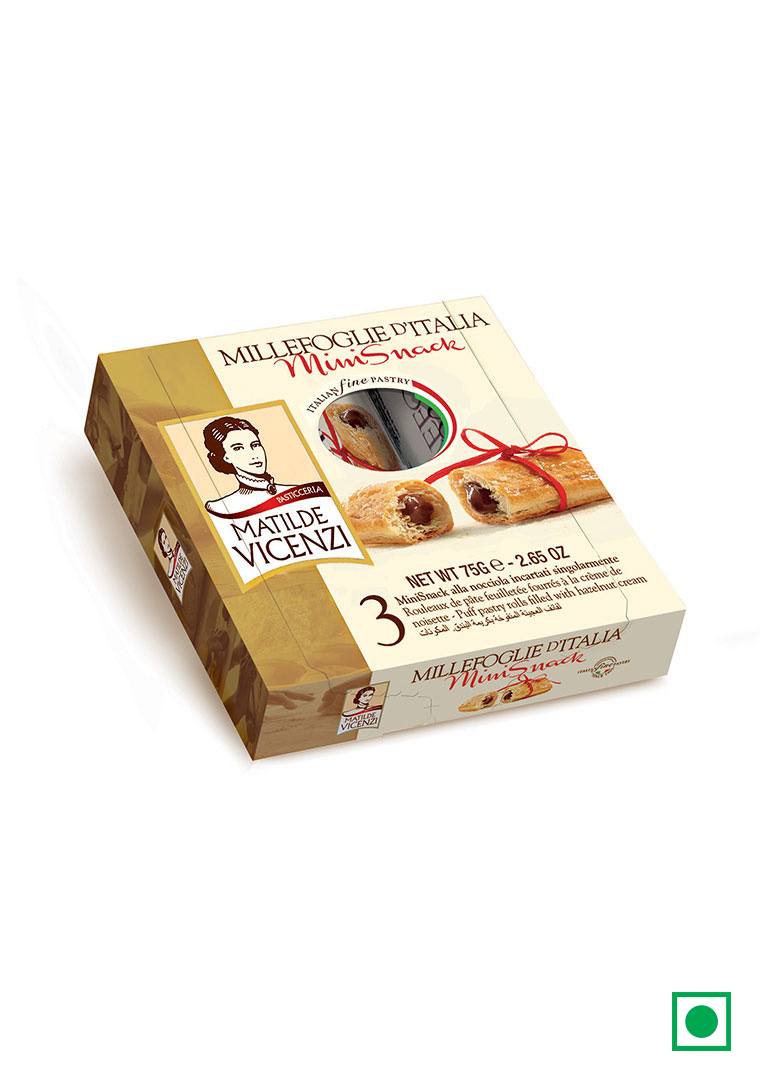 Millefoglie D’Italia from Matilde Vicenzi are delicious Italian puff pastry rolls filled with Hazelnut cream. When you bite into this tasty delight, the creamy filling and the crusty layer of the roll creates an unforgettable taste that last longer on your taste buds. For more than 100 years, Vicenzi has been synonymous with the quality and tradition of the art of Italian Confectionery.
