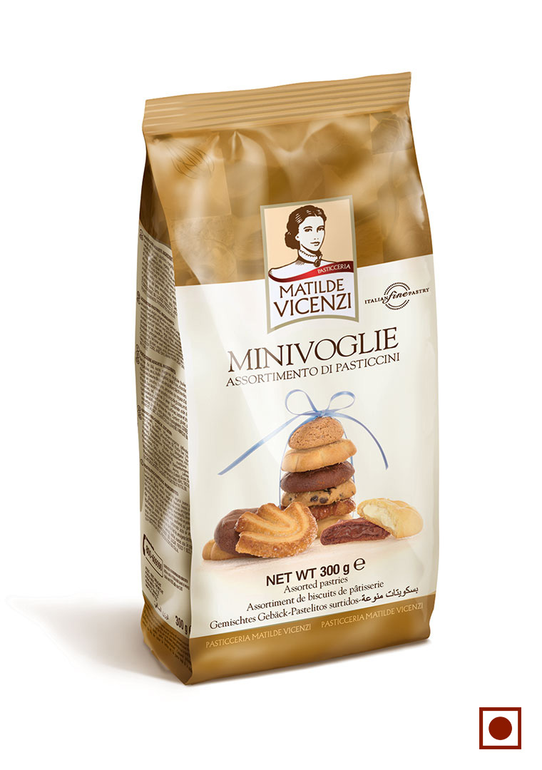 Minivoglie Assorted Pastries Nothing is more exquisite than the petite Minivoglie patisserie: creamy filled cookies, delightful biscuits with jam,and frosted cookies. An assortment of sweet surprises. 300 gm 10pcs/ctn